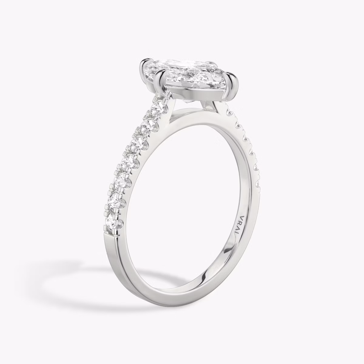 A toast to everlasting beauty and elegance, the Cathedral engagement ring is our modern take on a traditional design. Graceful arches are formed by the style’s long, architectural lines for a beautiful duality of minimal and artistic appeal. Designed to pair flush with your wedding band, it embraces and accentuates the brilliance of a raised center stone.
